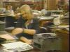 she pushes carriage-return lever on typewriter...